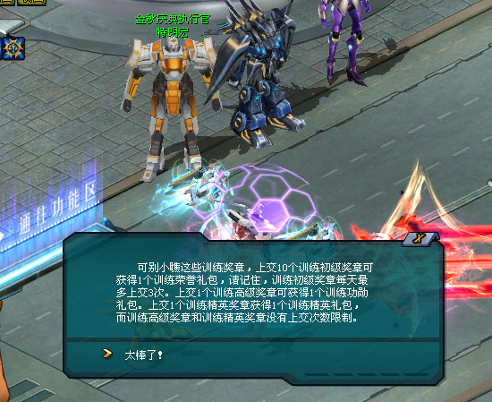 从特朗宏那,我们得知联盟在这次活动中准备了不同等级的训练奖章,表彰那些在训练中表现突出的机师们!可别小瞧这些训练奖章,你要知道,联盟对优秀的机师从不吝啬,所以,机师们可以将训练奖章上交给特朗宏兑换丰厚的奖励!那要如何才能获得训练奖章?