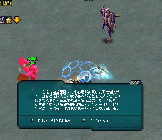 在她眼里,每个心愿都像是璀璨的钻石般闪闪发亮。所以,她很喜欢收集亮晶晶的宝石,尤其是粉色的钻石。用她的话形容,粉色钻石的光芒,就像是梦幻的羽翼,在星际的夜空中轻轻摇曳。每一次闪烁,都像是心愿实现后砰砰的心跳信号。 如果可以,机师,你愿意将身上的200点粉红水晶送给猪猪侠·绯绯吗?