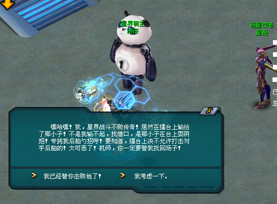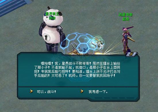 滚滚,星界战斗的不败传奇,以其坚不可摧的意志和无懈可击的技巧,赢得了无数荣耀与尊敬。 然而,在那次星际擂台对决赛中,滚滚第一次遭遇了失败——他遇到了一个卑劣的擂台黑手。 擂台黑手·傲狼,这位擂台黑马,以不择手段著称。他的战术狡猾而阴险,总是能在规则的边缘游走,寻找对手的弱点。在与滚滚的对战中,他一直避免正面交锋,而是采取卑劣的手段,专攻滚滚的后脑勺——这是擂台上严令禁止的行为,并以这种手段赢得了比赛。 滚滚不能容忍这种行为,他非常生气!傲狼的行为不仅是对滚滚的挑衅,更是对整个星际擂台精神的亵渎! 机师,滚滚希望你能出马对战擂台黑手·傲狼,用拳头捍卫星际擂台的荣耀。 你当即拍着胸脯保证,定让那擂台黑手·傲狼跪地求饶!