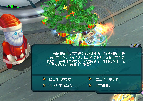挑挑拣拣过后,你挑中一个精美的圣诞彩球往圣诞树上挂去。哇!圣诞树装饰进度加了!