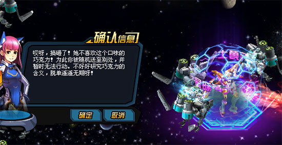 你给甜心送上了1份榛子巧克力,满心期待她会喜欢。噫?你眼前突然一黑,你发现你被传送出钢铁巨舰,且浑身无法动弹了。糟糕,你送错巧克力啦!甜心并不喜欢榛子巧克力,她想成为你的蜜糖,喜欢吃的是牛奶巧克力。看来,如果不好好研究这些巧克力的个中含义,不仅不能博得佳人一笑,还要可怜兮兮受到惩罚。