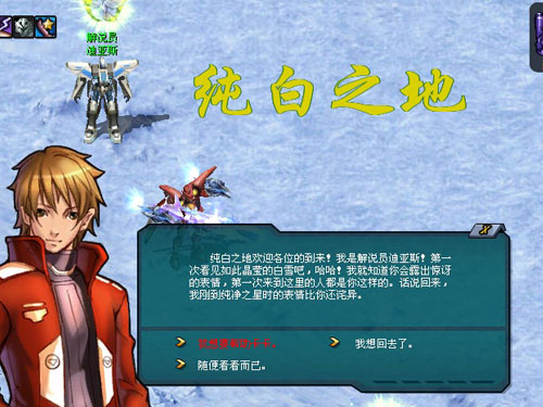 当交付4个游戏币后,艾莉娜就会将你带入纯白之地。听说这里是卡利佛模仿纯净之星的环境制造出来的。既来之,则安之。没走多远就看到了解说员·迪亚斯,先和他了解下情况吧。