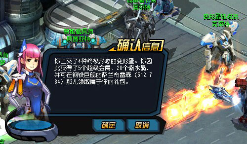 当你成功把变形蛋进化到终极形态后,就可以上交“终极态变形蛋”给变形蛋征收员•克莱特了,他会支付你培养变形蛋的报酬;一次性上交全部四种变形蛋的机师还能获得额外的、巨大、意想不到的惊喜哦。