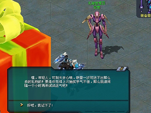 庆典派送礼包里面有什么?哈,谁也不知道哦,好运的你要自己拆包了才知道,看看幸运之神给了你什么样的礼物,是……还是……?一切都是未知,等你来揭开谜底咯……不过记住一个小时只能领取一次礼品。