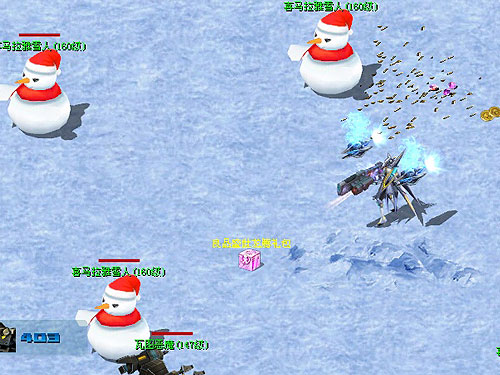 在快乐的雪人大战中也是要小心的。这些看似可爱的雪人可是有一定攻击能力的,小心它们丢过来的雪块。躲开它们的进攻。打败它们之后就可以得到蓝水晶作为奖励,还可能得到各种盛世龙腾礼包哦。
